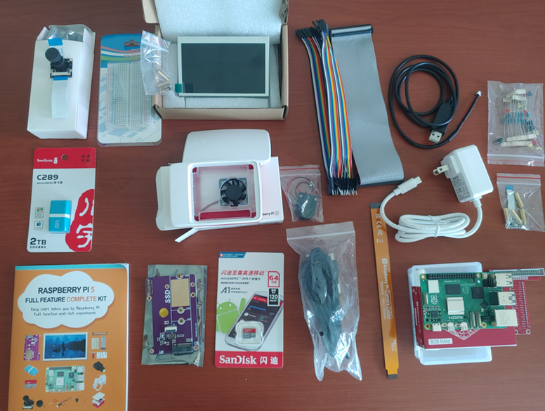 안녕하세요. AI 시대이고, 모델도 올려보고 이런저런 테스트를 해보고자 Raspberry Pi 5 FULL KIT을 구매했습니다. 최소 LLM 모델이라도 작동해 보려면 RAM이 8G도 스펙이 조금 부족하기는 하지만, 16G까지 올리면 가격이 미니 PC를 구매하는 것에 비해 가성비가 떨어지는 것 같아서 8GB로 선택했습니다. 16GB가 제품이 가성비가 나쁘다는 것이 아닙니다. 목적에 맞게 교육용, 저전력, 소형화, I/O 제어 등 필요하다면 나쁘지 않은 선택이 될 수 있습니다. 먼저, 간단하게 제품 구성을 보겠습니다. 1. 전체 부품 구성확인 FULL KIT라서 LCD, Camera, PCIe to M.2 expansion board 등 이 있었고, Coin Battery 위한 케이스와 시리얼..