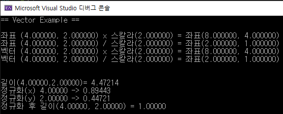 안녕하세요. 유니티를 이용해서 게임을 만들려면 공간상 몇 가지 개념에 대한 이해가 필요했습니다. 그래서 참고도서를 읽으면서 조금 정리해 보았습니다. 그리고 소스를 확인할 수 있도록 수정해서 확인해 보았습니다. 1. 간략하게 좌표, 백터, 스칼라 개념 정리 - 좌표(Coordinate, Point) : 위치의 명확한 위치를 나타내는 것, 2차원의 경우 x, y 숫자로 위치 파악 - 벡터(Vector) : 크기와 방향을 지는 값으로 이동량을 나타냄( 시작하는 지점은 상관없지만, 일반적으로 원점(0,0)에서 시작 ) - 스칼라(Scalar) : 벡터와 대비되는 개념으로 방향을 가지지 않고 크기만 자지고 있는 양 2. 프로그램 소스로 확인 좌표와 벡터의 연산과 좌표와 스칼라 연산 등 간단하게 계산해..